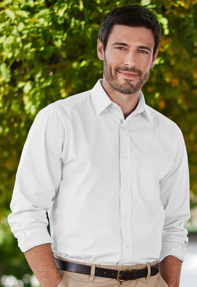 Chemise homme en coton à manches longues et poche. Plus