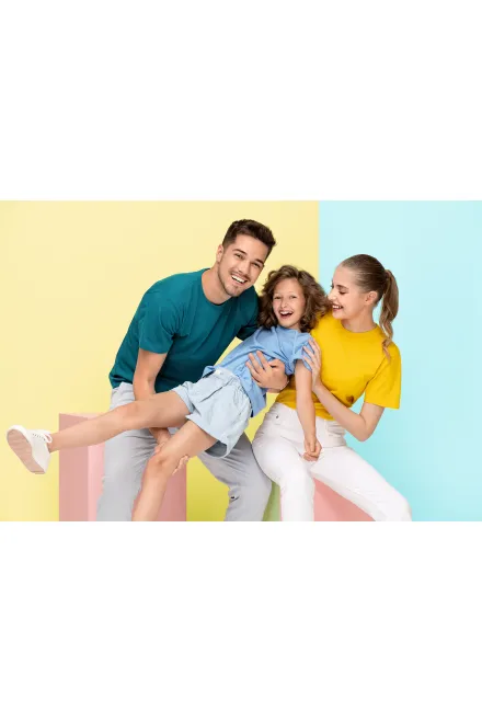 Notion de famille - vêtements pour femmes, hommes et enfants, dans un style et des couleurs uniformes.